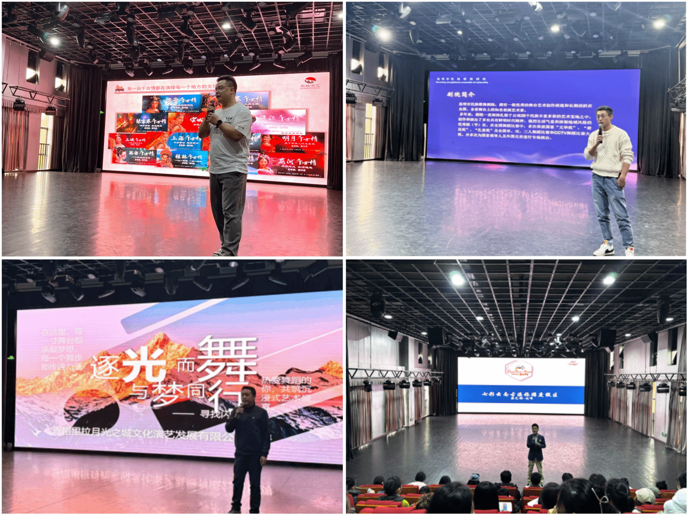 舞蹈学院结合访企拓岗成果,强化校企衔接,促进校企合作,引进优质资源,在前期充分做好就业动员和就业指导的基础上,邀请用人单位开展招聘宣讲。宋城演艺集团、昆明市民族歌舞剧院有限公司、香格里拉市月光之城文化演艺发展有限公司、昆明七彩云南古滇王国投资发展有限公司等用人单位开展了现场宣讲。各用人单位分别就企业文化、发展前景、岗位需求、薪资待遇及人才培养计划等内容作了详细介绍,并与在场学生进行了积极互动,现场气氛热烈,交流深入,有效增进了毕业生对行业现状和就业方向的了解,促进了供需的有效对接。