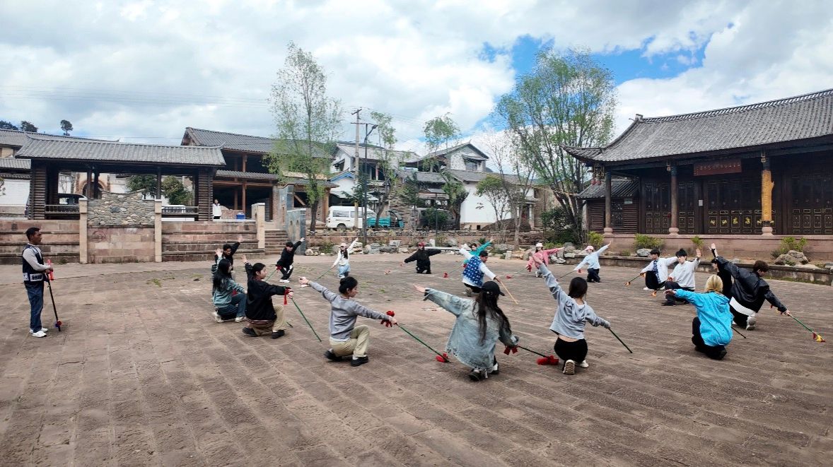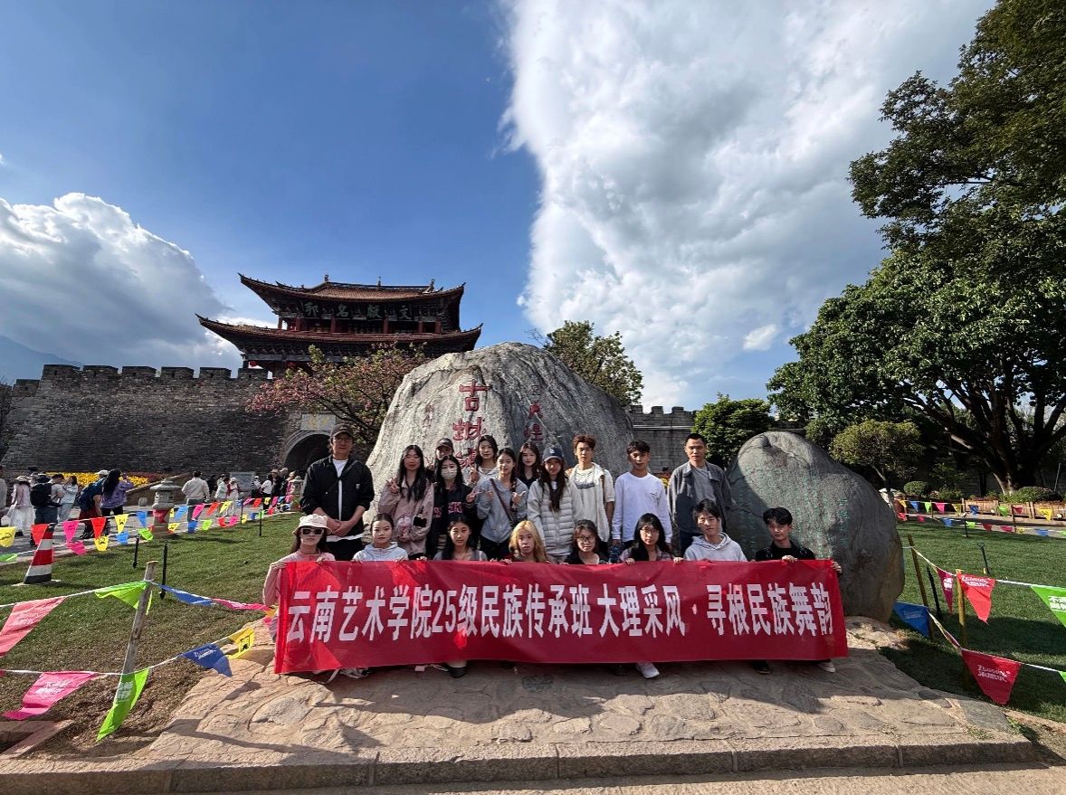 为深化民族舞蹈专业实践教学,挖掘云南非遗舞蹈文化资源,推动非遗活态传承与舞蹈创作深度融合,4月9日至4月12日期间,舞蹈学院2025级民族舞蹈传承班赴大理开展非遗舞蹈主题采风实践活动。本次采风由专业教师带队、班级全体学生参与,聚焦大理地区霸王鞭、耳子歌、力格高等特色非遗舞蹈,通过实地调研、传承人教学、动作研习、文化溯源等方式,让学生走进民间文化场域,体悟原生舞蹈的艺术精髓与文化内涵。